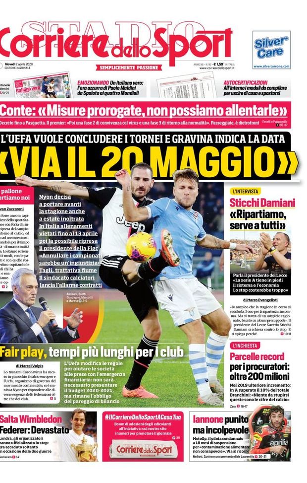 Milan sui media, le prime pagine dei giornali di oggi (02/04/2020)