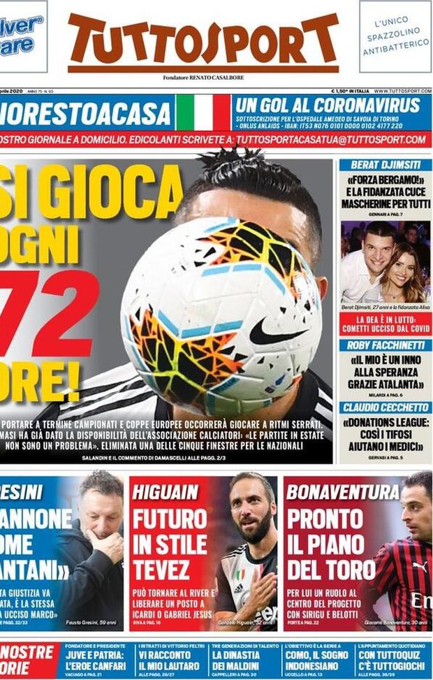 Milan sui media, le prime pagine dei giornali di oggi (04/04/2020)