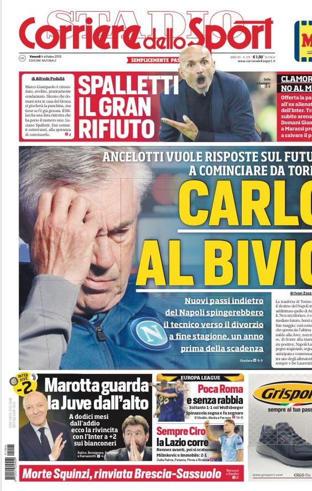 Milan sui media, le prime pagine dei giornali di oggi (04/10/2019)