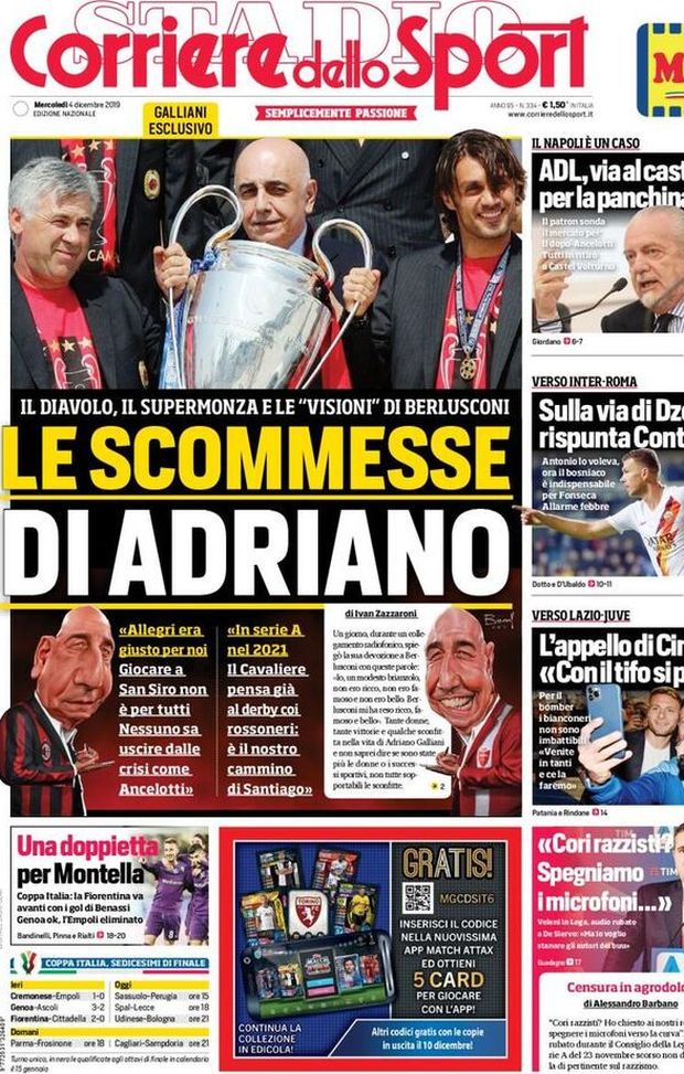 Milan sui media, le prime pagine dei giornali di oggi (04/12/2019)