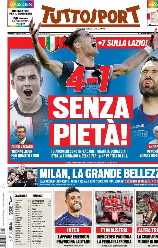 Milan sui media, le prime pagine dei giornali di oggi (05/07/2020)