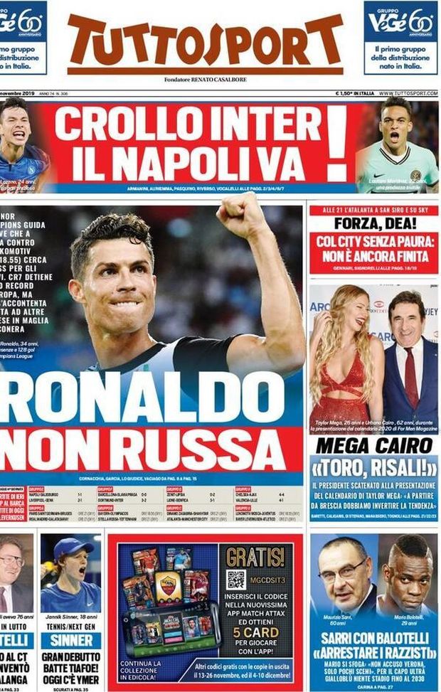 Milan sui media, le prime pagine dei giornali di oggi (06/11/2019)
