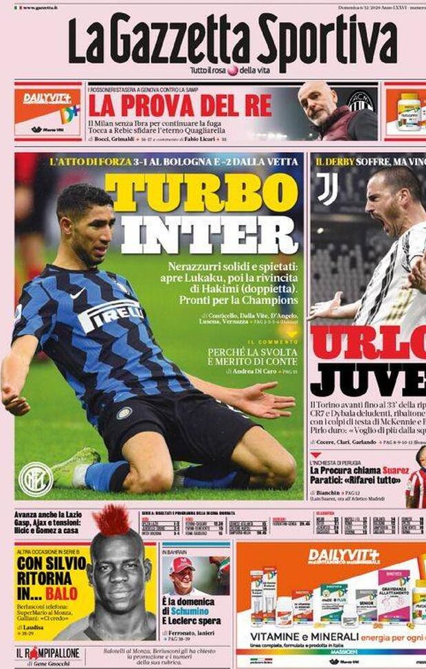 ULTIME NOTIZIE MILAN NEWS - Ecco le prime pagine di oggi, domenica 6 dicembre de 'La Gazzetta dello Sport', 'Corriere dello Sport' e 'Tuttosport'. In primo piano le partite di ieri, con le vittorie di Lazio, Juventus e Inter. Milan chiamato alla prova del 9 senza i suoi riferimenti di esperienza Zlatan Ibrahimovic e Simon Kjaer.