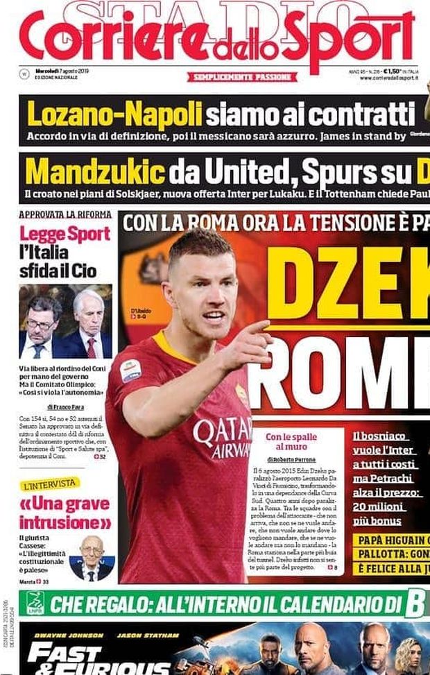 Milan sui media, le prime pagine dei giornali di oggi (07/08/2019)