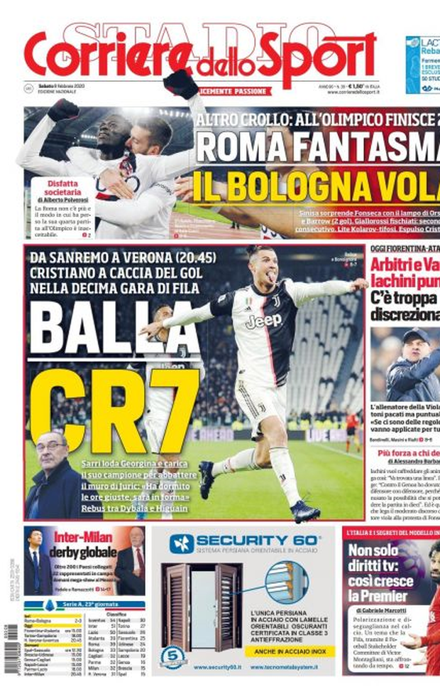 Milan sui media, le prime pagine dei giornali di oggi (08/02/2020)