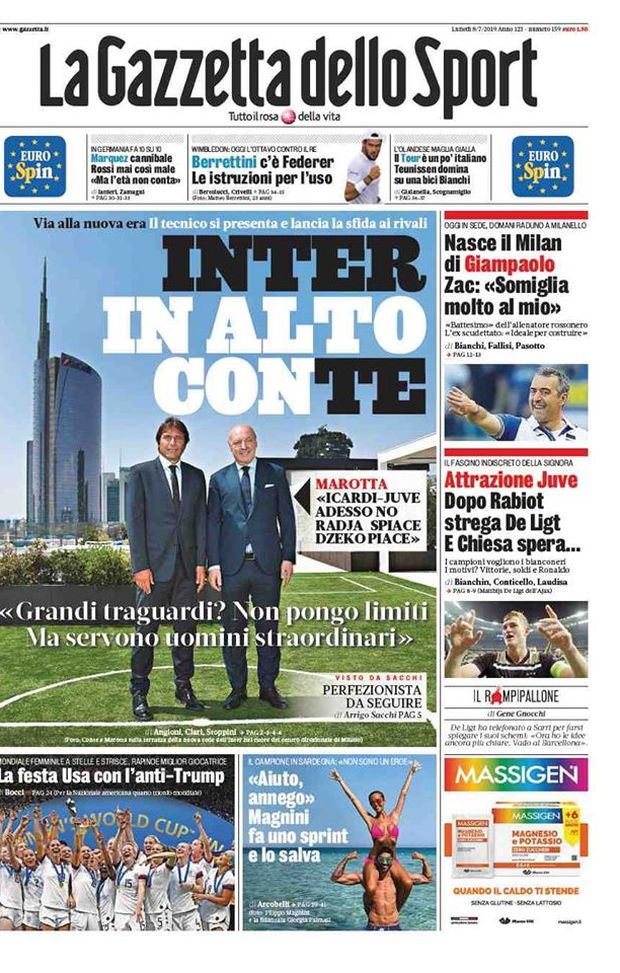 Milan sui media, le prime pagine dei giornali di oggi (08/07/2019)
