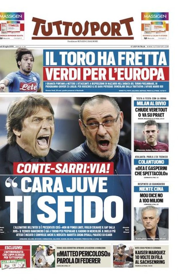 Milan sui media, le prime pagine dei giornali di oggi (08/07/2019)