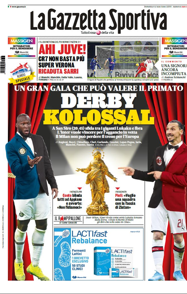 Ecco le prime pagine di oggi, domenica 9 febbraio 2020 de 'La Gazzetta dello Sport', 'Corriere dello Sport' e 'Tuttosport'. In primo piano il derbydi Milano che si giocherà stasera a San Siro alle ore 20.45. Nerazzurri che in caso di vittoria agguanterebbero la Juventus, sconfitta ieri sera a Verona 2-1.