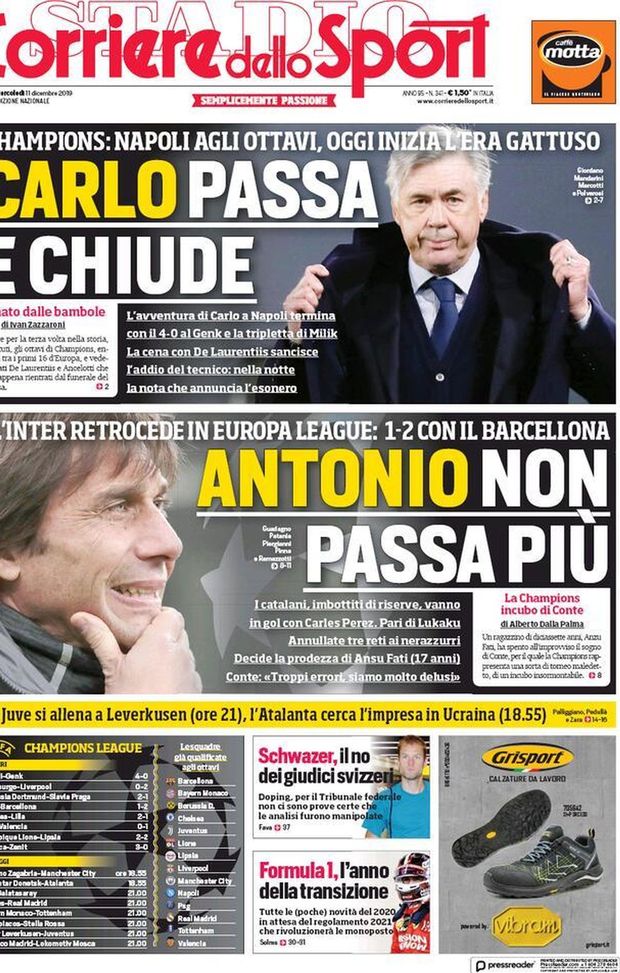 Milan sui media, le prime pagine dei giornali di oggi (11/12/2019)