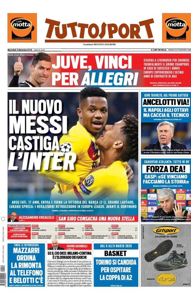 Milan sui media, le prime pagine dei giornali di oggi (11/12/2019)