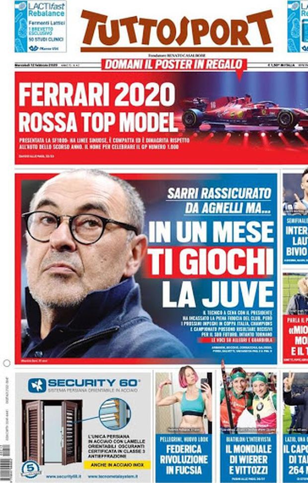 Milan sui media, le prime pagine dei giornali di oggi (12/02/2020)