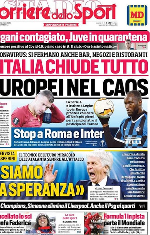 Milan sui media, le prime pagine dei giornali di oggi (12/03/2020)