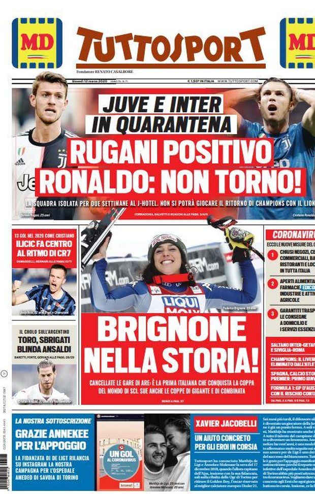 Milan sui media, le prime pagine dei giornali di oggi (12/03/2020)