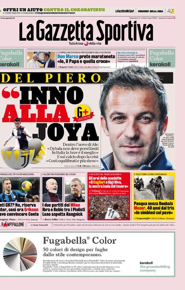 Ecco le prime pagine di oggi, domenica 12 aprile 2020 de 'La Gazzetta dello Sport', 'Corriere dello Sport' e 'Tuttosport'. In primo piano l'intervista alla rosea di Alessandro Del Piero, mentre a Tuttosport ha parlato il difensore rossonero Simon Kjaer. In casa Milan divisione tra i partiti a favore di Pioli (Rebic e Ibra) e Rangnick (Leao). Chi la spunterà?