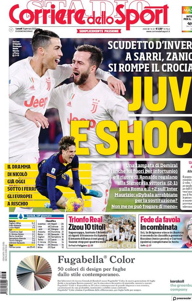 Milan sui media, le prime pagine dei giornali di oggi (13/01/2020)