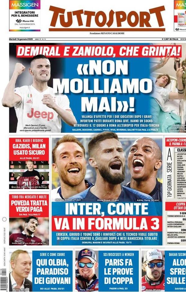 Milan sui media, le prime pagine dei giornali di oggi (14/01/2020)