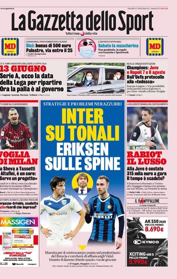 NEWS MILAN - Ecco le prime pagine di oggi, giovedì 14 maggio 2020 de 'La Gazzetta dello Sport', 'Corriere dello Sport' e 'Tuttosport'. In primo piano la situazione difficile che sta attraverso il Milan. Shevchenko, Tassotti e Altafini sono tutti concordo su una cosa: "Serve un progetto". A tra poco per la rassegna stampa completa