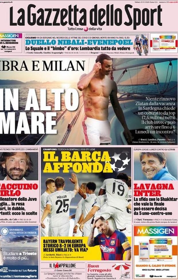 ULTIME NOTIZIE MILAN NEWS - Ecco le prime pagine di oggi, sabato 15 agosto 2020 de 'La Gazzetta dello Sport', 'Corriere dello Sport' e 'Tuttosport'. In primo piano il rinnovo di Zlatan Ibrahimovic, che sembra essere al momento più lontano. Lunedì incontro decisivo?
