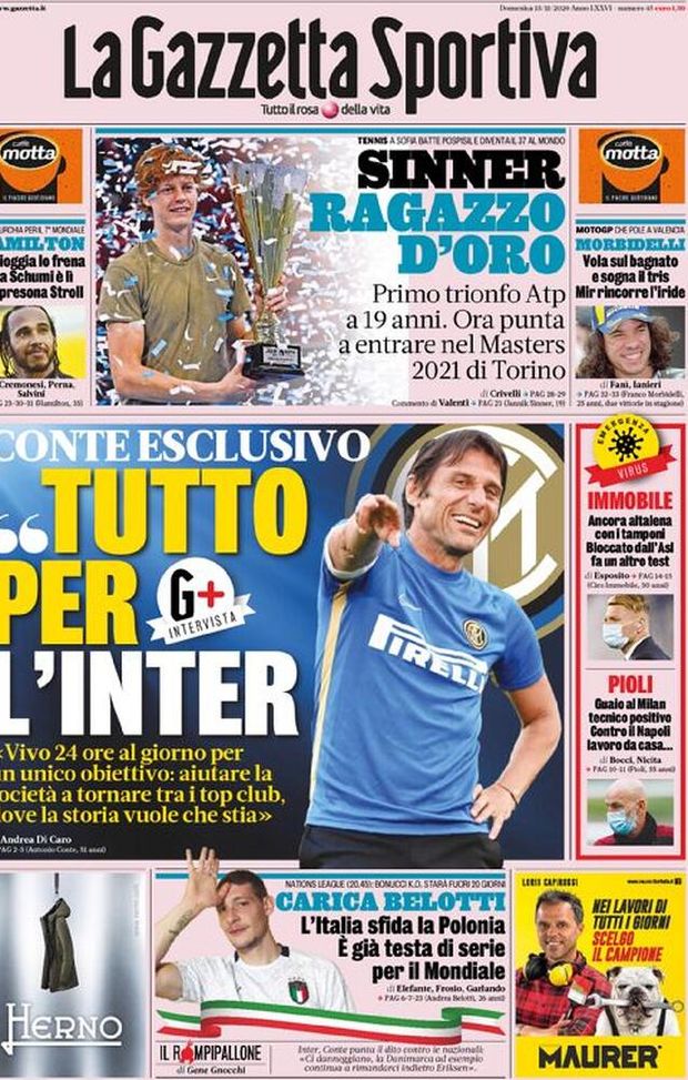 ULTIME NOTIZIE MILAN NEWS - Ecco le prime pagine di oggi, domenica 15 novembre de 'La Gazzetta dello Sport', 'Corriere dello Sport' e 'Tuttosport'. In primo piano la vittoria di Jannik Sinner all'ATP di Sofia e la gara di questa sera tra Italia e Polonia che si disputerà a Reggio Emilia: in palio il possibile passaggio del turno in Nations League. In casa Milan, occhio a Calhanoglu: secondo Tuttosport, Inter e Juventus sono pronte allo sgambetto ai rossoneri.