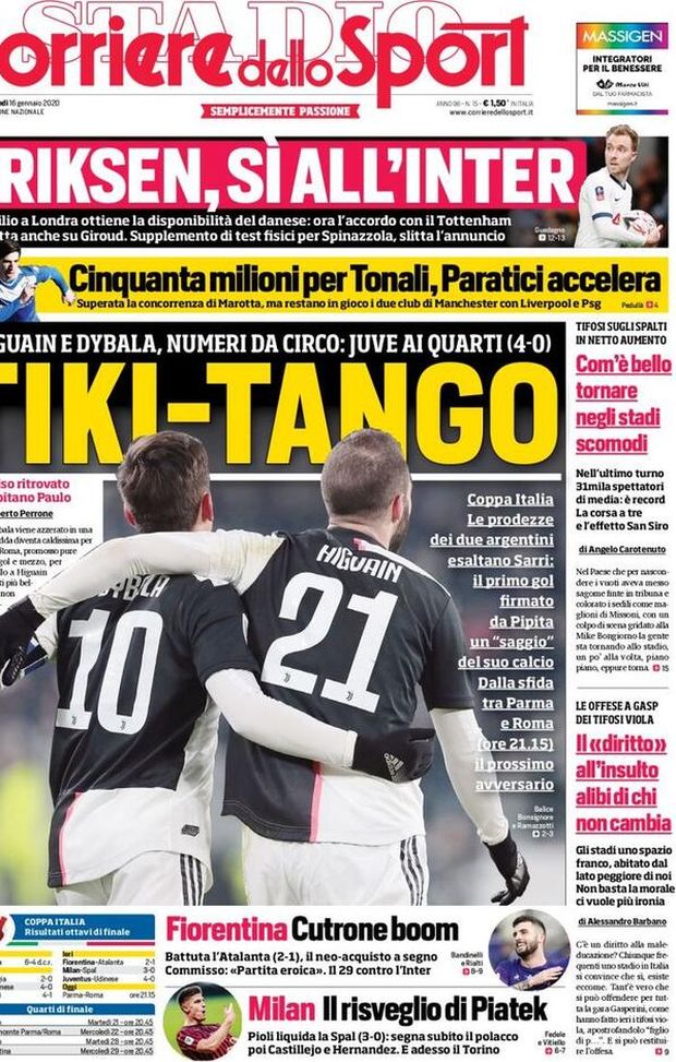 Milan sui media, le prime pagine dei giornali di oggi (16/01/2020)
