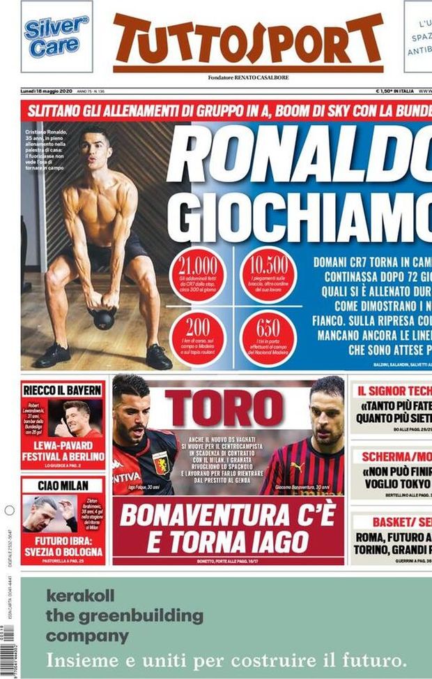 Milan sui media, le prime pagine dei giornali di oggi (18/05/2020)