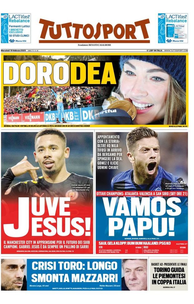 Milan sui media, le prime pagine dei giornali di oggi (19/02/2020)