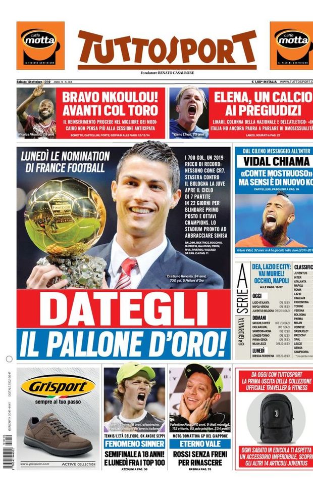 Milan sui media, le prime pagine dei giornali di oggi (19/10/2019)