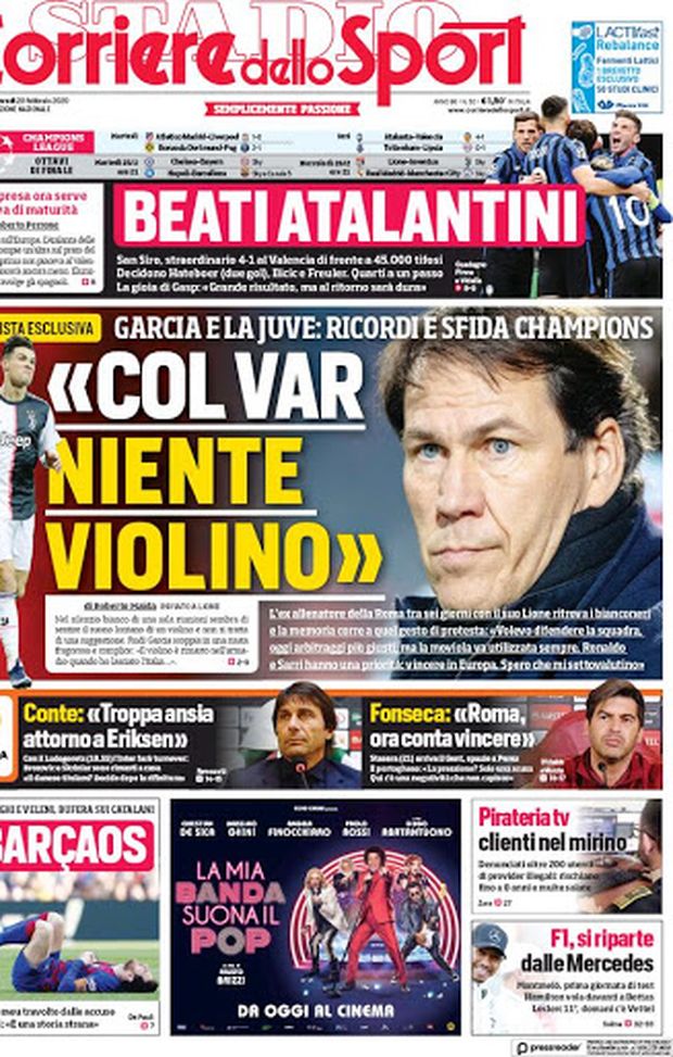 Milan sui media, le prime pagine dei giornali di oggi (20/02/2020)