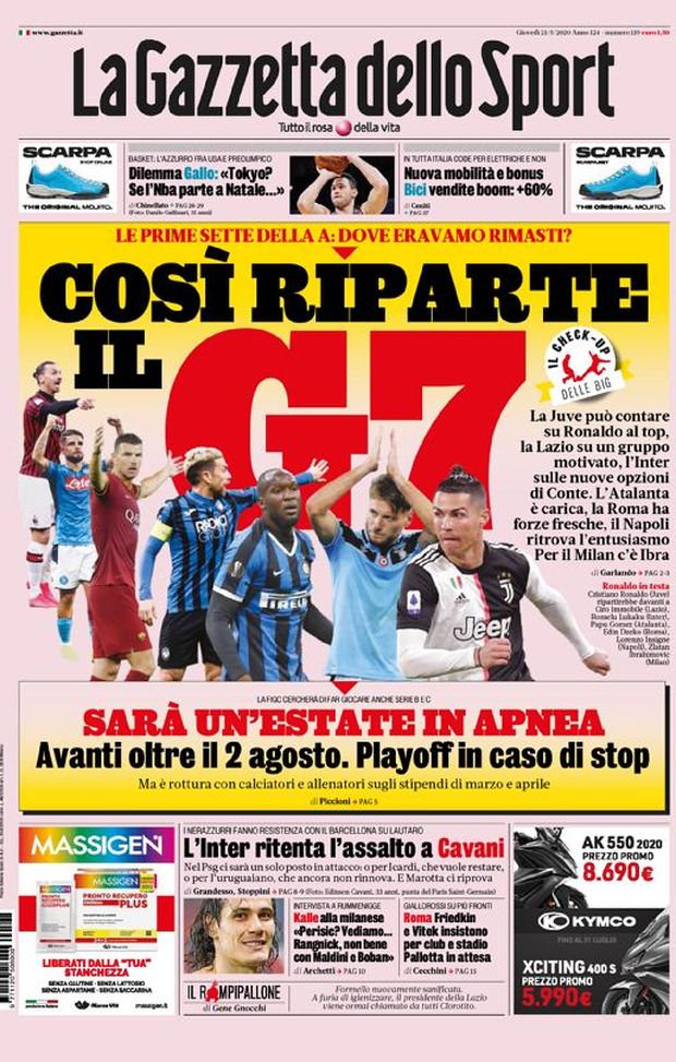 MILAN NEWS - Ecco le prime pagine di oggi, giovedì 21 maggio 2020 de 'La Gazzetta dello Sport', 'Corriere dello Sport' e 'Tuttosport'. In primo piano la ripartenza della Serie A, che andrà avanti oltre il 2 agosto. In caso di nuovo stop per il coronavirus verranno disputati i playoff. Il Milan dunque attende la ripartenza del campionato italiano così come tutte le altre squadre.