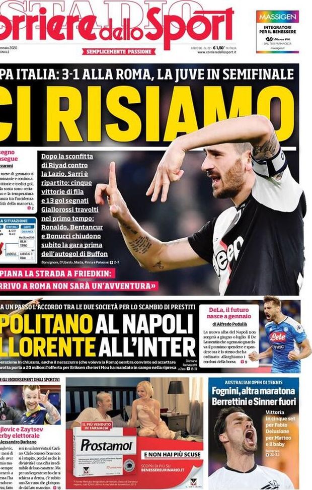 Milan sui media, le prime pagine dei giornali di oggi (23/01/2020)