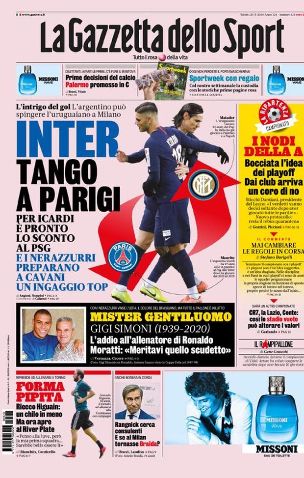 MILAN NEWS - Ecco le prime pagine di oggi, sabato 23 maggio 2020 de 'La Gazzetta dello Sport', 'Corriere dello Sport' e 'Tuttosport'. In primo piano la morte di Gigi Simoni, ex allenatore di Brescia, Inter e Cremonese tra le altre. In casa Milan, Ralf Rangnick cerca dei consulenti italiani: e se tornasse Braida?