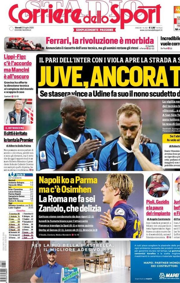 Milan sui media, le prime pagine dei giornali di oggi (23/07/2020)
