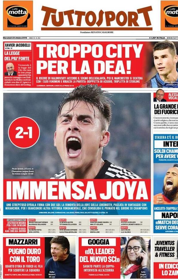 Milan sui media, le prime pagine dei giornali di oggi (23/10/2019)