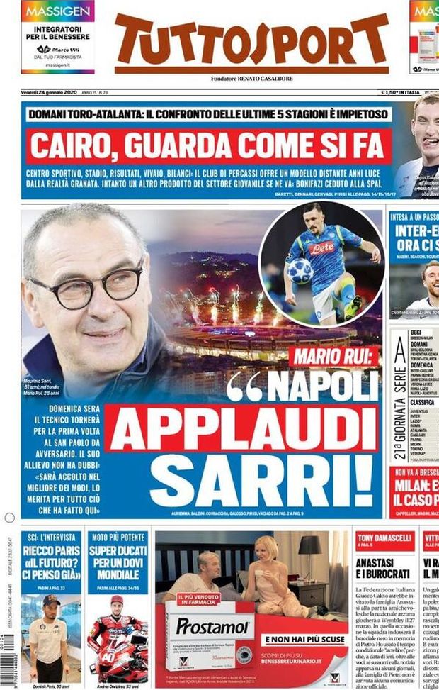 Milan sui media, le prime pagine dei giornali di oggi (24/01/2020)