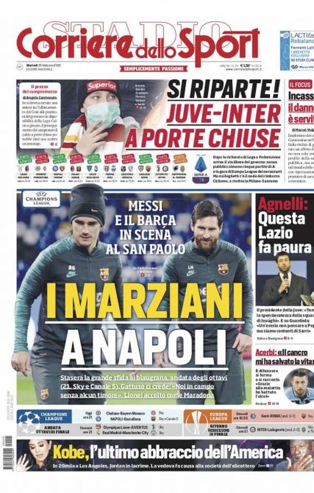 Milan sui media, le prime pagine dei giornali di oggi (25/02/2020)