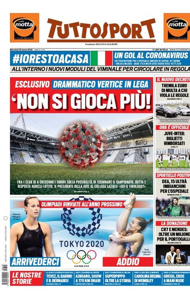 Milan sui media, le prime pagine dei giornali di oggi (25/03/2020)