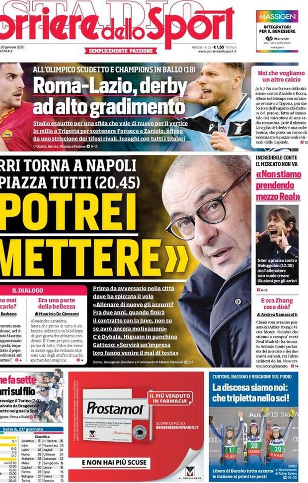 Milan sui media, le prime pagine dei giornali di oggi (26/01/2020)