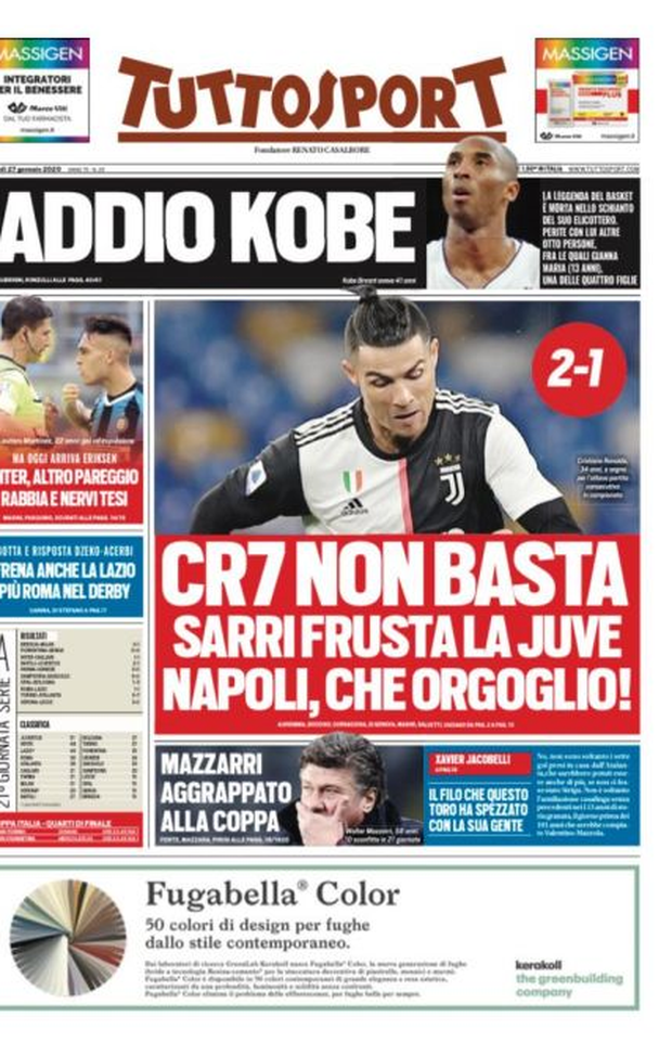 Milan sui media, le prime pagine dei giornali di oggi (27/01/2020)