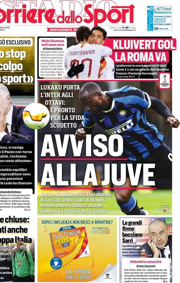 Milan sui media, le prime pagine dei giornali di oggi (28/02/2020)