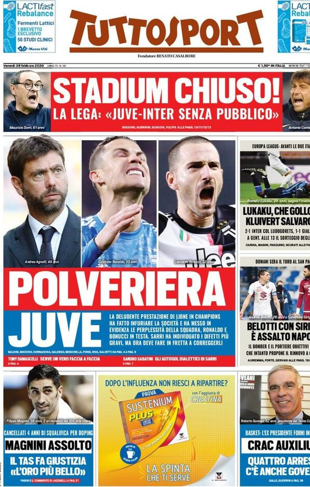 Milan sui media, le prime pagine dei giornali di oggi (28/02/2020)