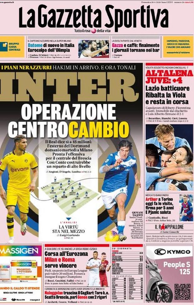 Milan sui media, le prime pagine dei giornali di oggi (28/06/2020)