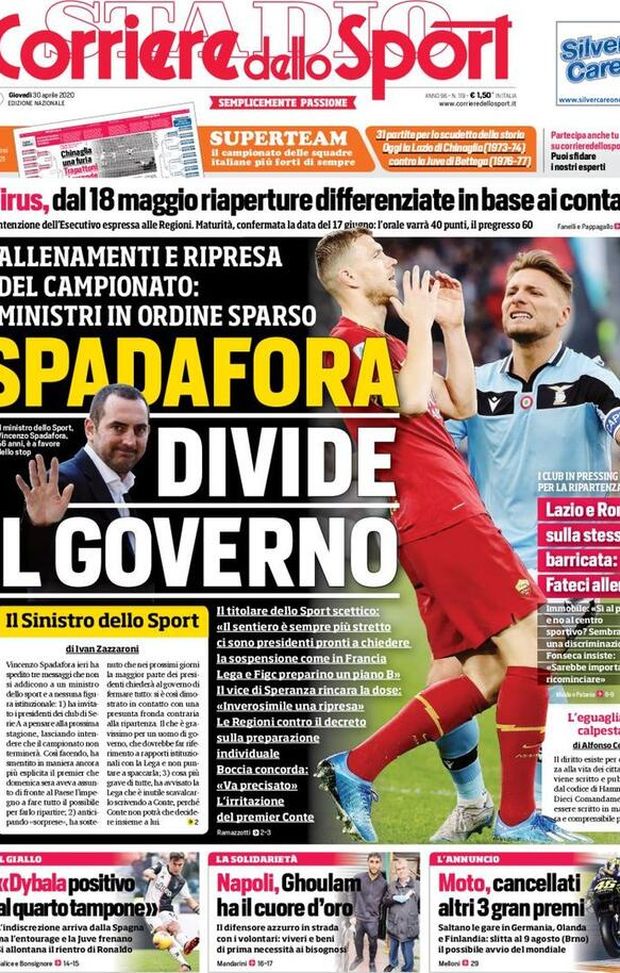 Milan sui media, le prime pagine dei giornali di oggi (30/04/2020)