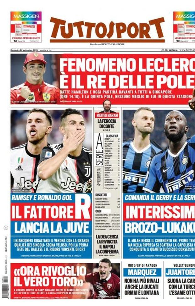 Milan sui media, le prime pagine dei giornali di oggi (22/09/2019)