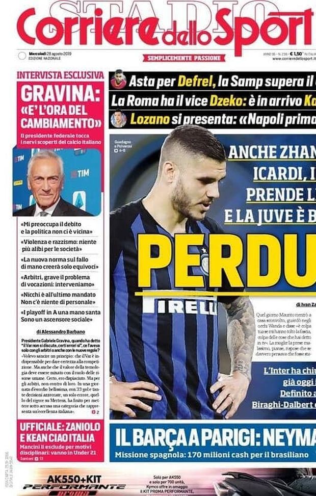 Milan sui media, le prime pagine dei giornali di oggi (28/08/2019)