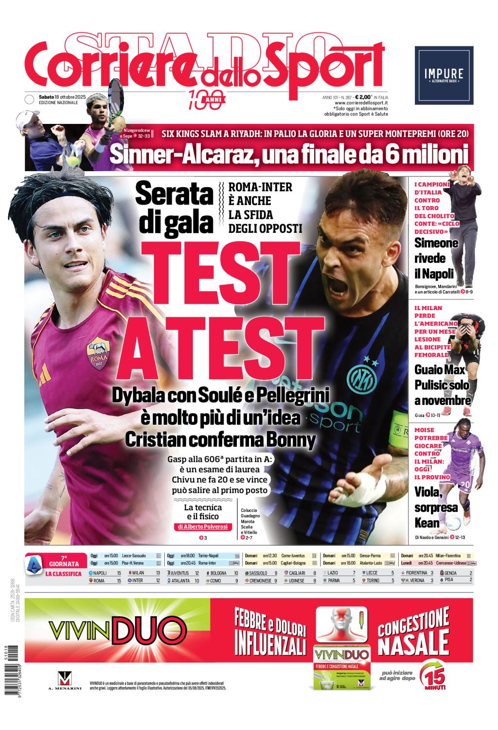 La Roma pensa di schierare Paulo Dybala in attacco con Matias Soulé e Lorenzo Pellegrini, mentre l'Inter dovrebbe confermare Ange-Yoan Bonny in attacco al fianco di Lautaro Martínez. Altra bella sfida è quella del pomeriggio (ore 18:00) tra il Torino di Marco Baroni e il Napoli di Antonio Conte: il 'Cholito', Giovanni Simeone, vuole tirare un brutto scherzo alla sua ex squadra.