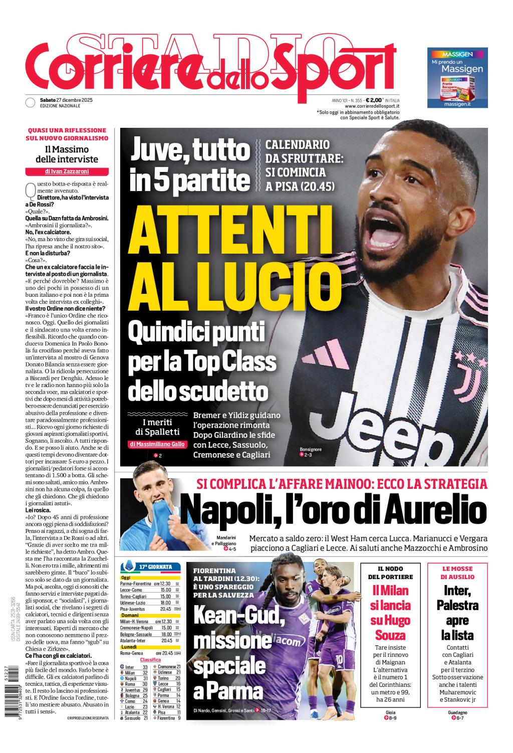 Si parla, poi, molto di calciomercato. Il Napoli - che può operare a saldo zero - vede complicarsi l'arrivo di Kobbie Mainoo, centrocampista del Manchester United. In uscita, può salutare Lorenzo Lucca, che piace al West Ham, così come Luca Marianucci e Antonio Vergara, che interessano a Cagliari e Lecce. In partenza anche Pasquale Mazzocchi e Giuseppe Ambrosino.