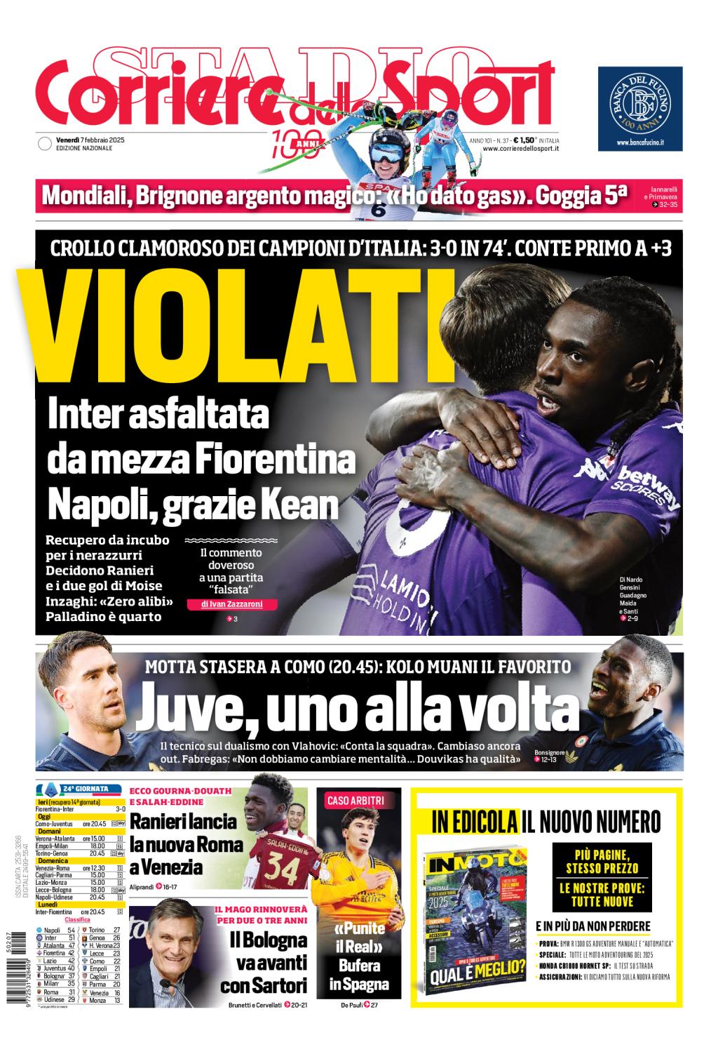 Il Napoli ringrazia la Fiorentina e resta primo in classifica, da solo, a + 3 sui nerazzurri ma ora con lo stesso numero di gare disputate. I gigliati, dal canto loro, agganciano la quarta posizione e sono in piena zona Champions. Stasera, alle ore 20:45, spazio all'anticipo della 24^ giornata della Serie A 2024-2025 tra il Como di Cesc Fàbregas e la Juventus di Thiago Motta.