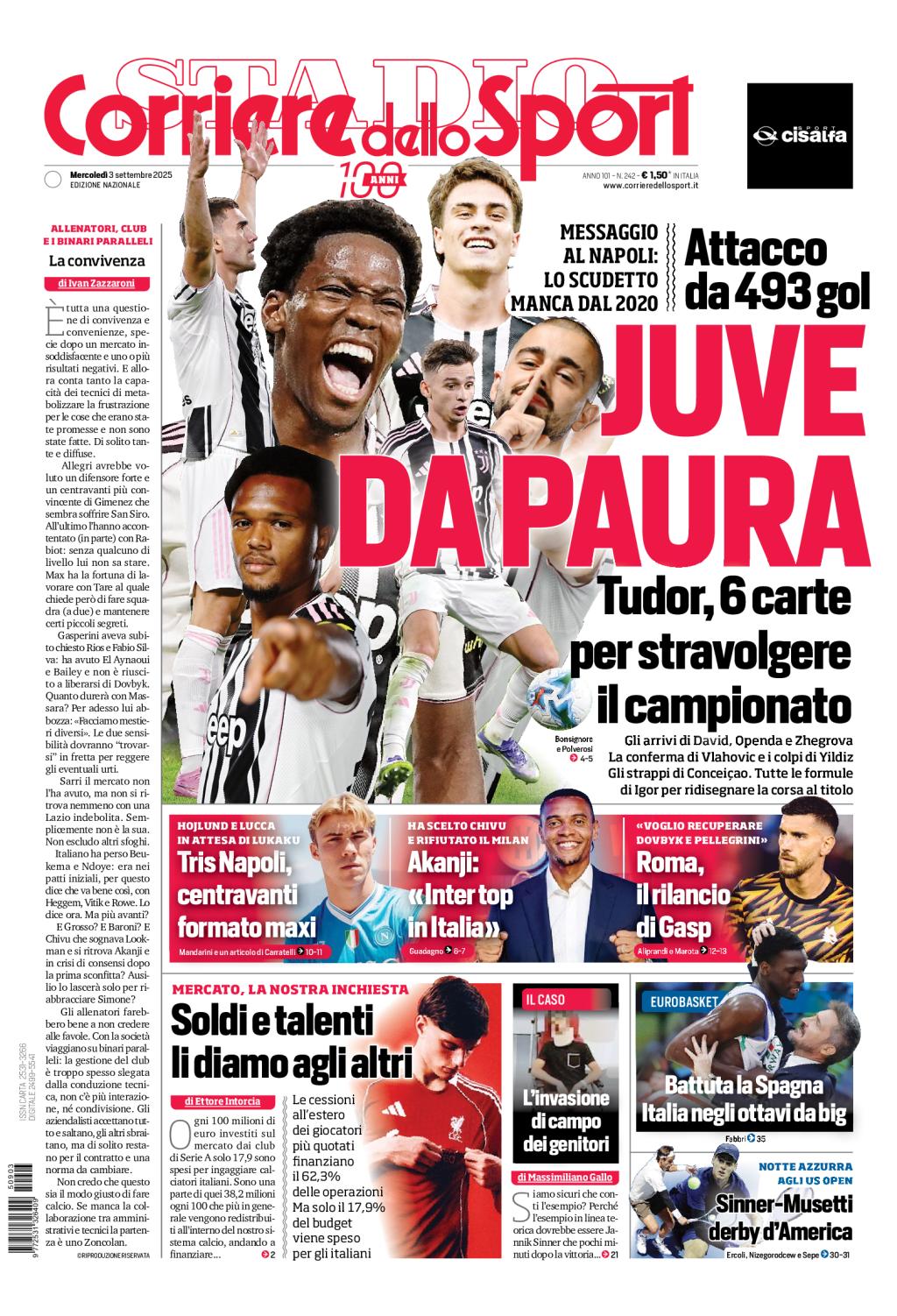 Questo nonostante il contratto di uno dei capitani giallorossi andrà in scadenza il 30 giugno 2026. Inchiesta, infine, del 'CorSport' sul calciomercato e su come vengono utilizzati dalle squadre italiane i soldi generati dalle cessioni. Soltanto il 17,9% del budget viene speso per i giocatori del nostro Paese.