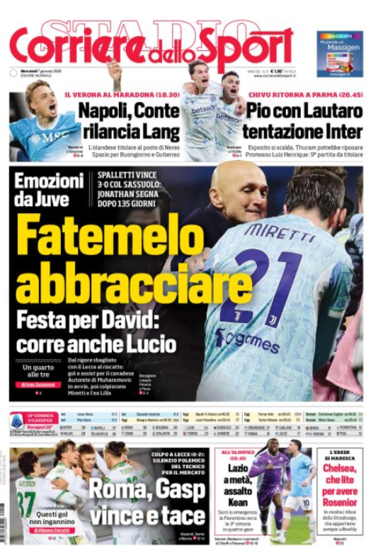 Questa è la prima pagina di 'Corriere dello Sport', in edicola oggi, mercoledì 7 gennaio 2026. Diamo un’occhiata alle principali novità sul mondo dello sport e in particolare del calcio, cercando di evidenziare le notizie sul Milan.