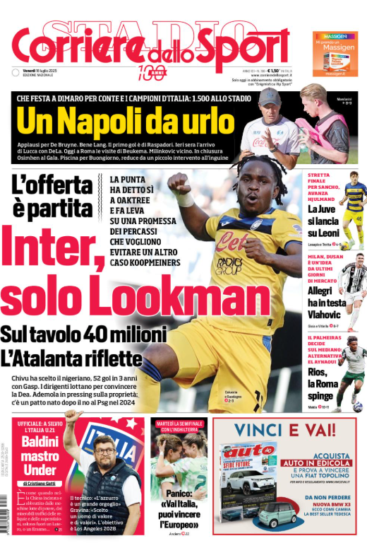 Questa è la prima pagina di 'Corriere dello Sport', in edicola oggi, venerdì 18 luglio 2025. Diamo un’occhiata alle principali novità sul mondo dello sport e in particolare del calcio, cercando di evidenziare le notizie sul Milan.